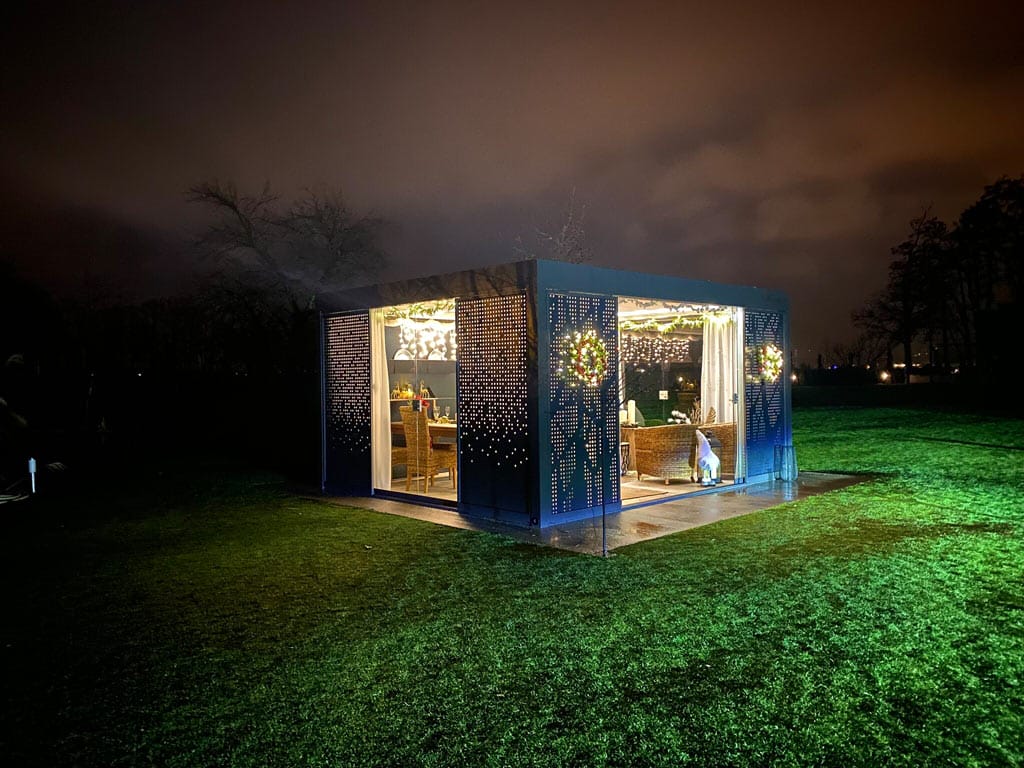 Die Standardausführung des PERGOLA SPAs kommt im modernen Anthrazit mit einer Maße von 5 m x 4 m x 2,5 m (BxTxH). Für die drei Beschattungswände kann der Bubble‑, Tree- oder Individual Style gewählt werden.